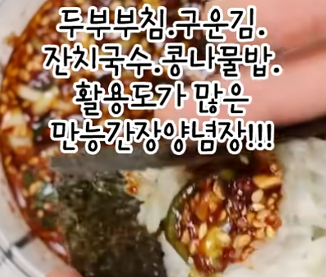 - 활용도가 매우 높습니다. 영상에서 언급된 대로 구운 김을 찍어 드시거나, 잔치 국수의 양념장, 콩나물밥 또는 비빔밥에 비벼 드시면 좋습니다. 각종 나물 무침이나 전을 찍어 먹는 용도로도 훌륭합니다.