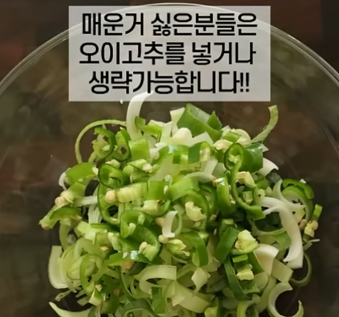 - 네, 매운 것을 싫어하시면 청양고추 대신 맵지 않은 '오이고추'를 총총 썰어 넣으시면 아삭한 식감과 향을 더할 수 있습니다. 혹은 고추를 완전히 생략하고 대파만 사용하셔도 충분히 맛있습니다.