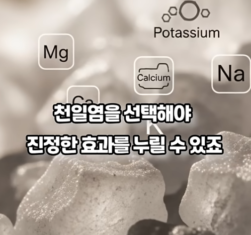 | 유의사항 | 아무 소금이나 드시면 안 됩니다 | 미네랄이 제거된 일반 소금으로는 진정한 건강 효과를 기대하기 어렵습니다. |